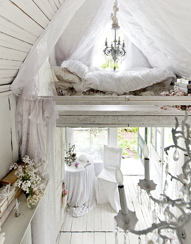 I absolutely love this...just shows..it's not the size, it's what you do with it. I think just about any woman would like to retreat and respite here. Lovely, fresh, inviting.
